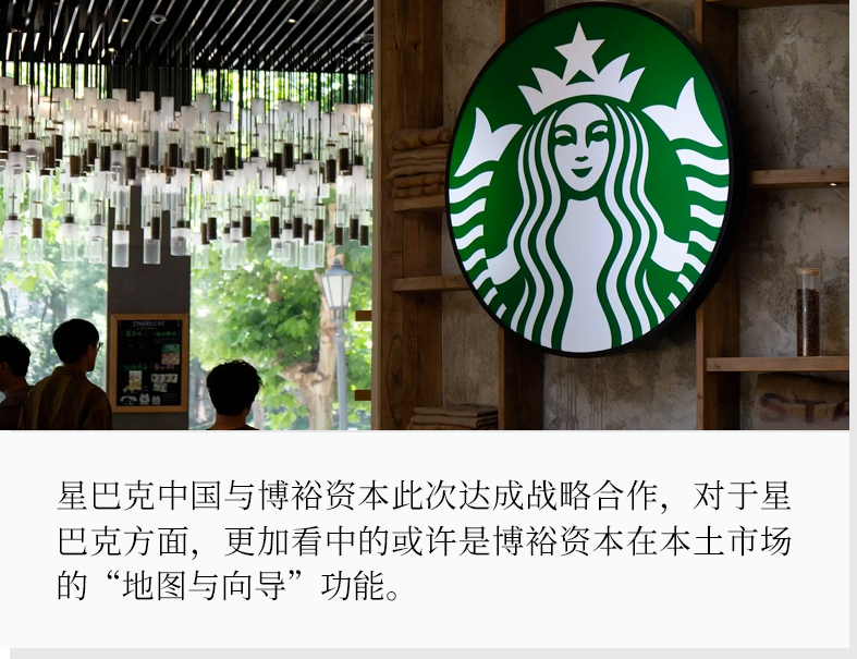 一位资深餐饮行业分析师对内参表示,星巴克中国与博裕资本此次达成战略合作,对于星巴克方面,更加看中的或许是博裕资本在本土市场的“地图与向导”功能。
