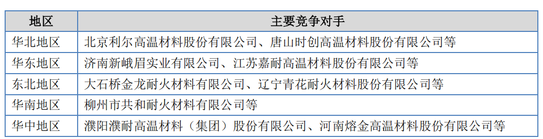 目前,有少数国内知名耐火材料企业在全国布局,并向上游原材料延伸,拥有镁制耐火原料矿山,如北京利尔、濮耐股份。大部分耐火材料企业深耕区域市场,形成了较高的市场影响力,例如江苏嘉耐高温材料股份有限公司位于江苏省宜兴市,在华东地区具有较大影响力。