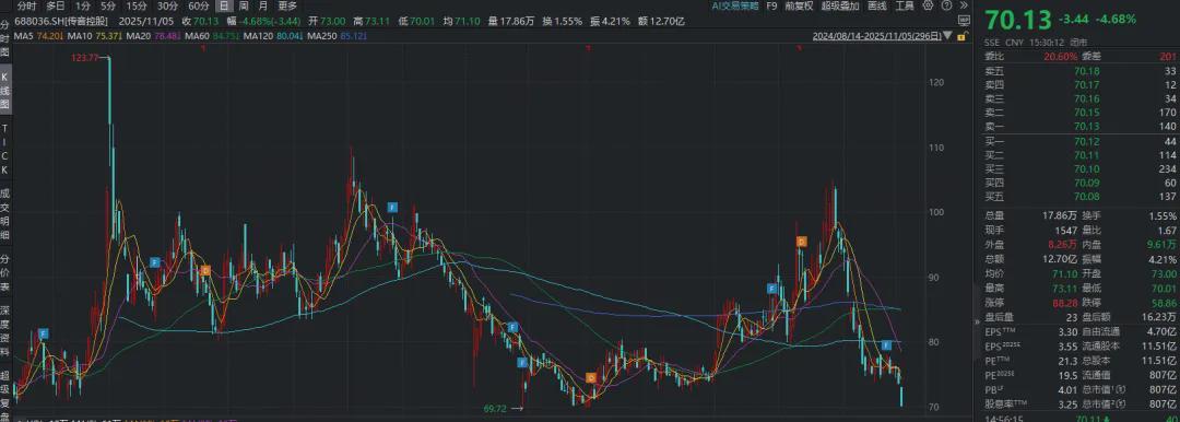 在业绩表现不佳之际,传音控股股价近期大跌超30%,总市值仅为807亿元。
