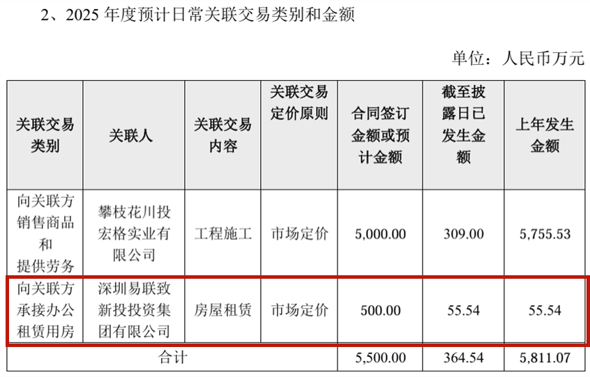公告提到,在4月8日召开的会议中,关联董事林晓晴、熊鹰对该议案回避表决。据该公告,涉及深圳易联致的预计金额为500万元,关键交易为成都路桥承租罗湖区庐山大厦21、22层作办公用房。此外,2024年公司与深圳易联致已发生关联交易金额为55.54万元。