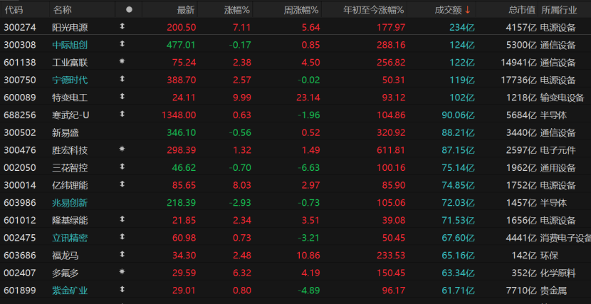 板块表现分化显著:电子、军工等板块跌幅收窄,电力设备板块涨逾3%;地摊经济、半导体等概念收跌。阳光电源、宁德时代等权重股领涨,中际旭创逆势下跌。今日3380只个股收涨,83只涨停,1905只收跌,7只跌停,市场赚钱效应集中于低估值与政策受益领域。