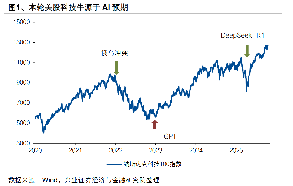 王涵指出,本轮美股牛市有两大核心支撑:一是自2022年末ChatGPT 3.5发布后,市场对美国在AI时代拥有“技术霸权”的预期不断升温;二是今年年中以来,特朗普施压美联储宽松,导致市场对流动性宽松的预期持续强化。然而,过去两天海外市场的调整,直接源于这两大核心驱动遭遇阶段性逆风。