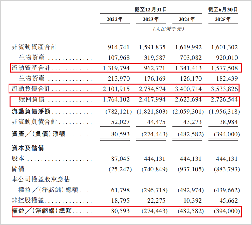 截至2025年6月底,公司流动负债总额高达35.34亿元,而流动资产仅为15.78亿元,流动性缺口达到19.56亿元,且目前总体上已经处于资不抵债的情况,整体风险显著。在这一资产负债结构中,赎回负债金额巨大,达到27.27亿元,成为公司当前面临的最大财务挑战之一。