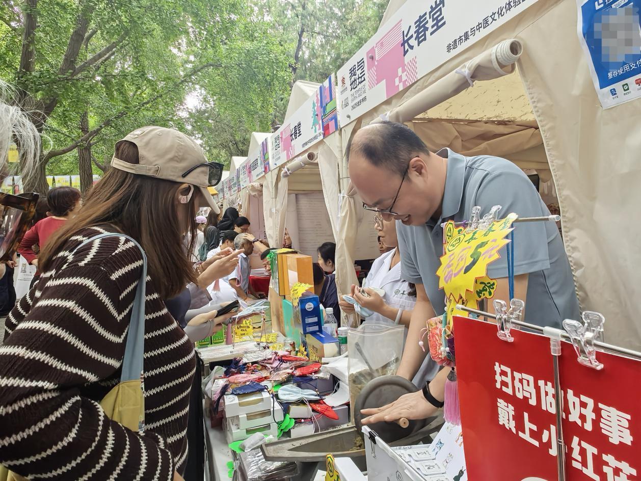 除了文创产品以外,本届地坛书市还设置了非遗市集与中医文化体验区。沿着这条街区漫步,阵阵草药香扑鼻而来。