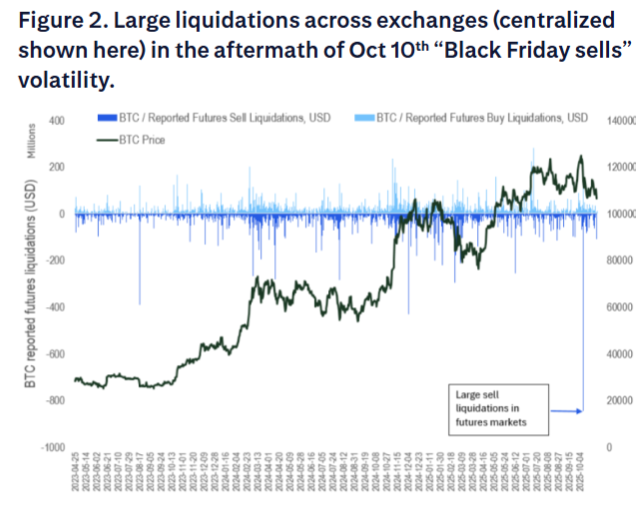 花旗在报告中指出,10月10日的“黑色星期五”清算事件进一步损害了市场的风险偏好。虽然期货市场通常是零和游戏,但这次清算可能损害了加密原住民的风险承担能力,并抑制了新潜在ETF投资者的风险偏好。