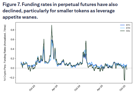 资金费率的下降也反映了杠杆需求的不足,表明市场情绪的整体疲软。
