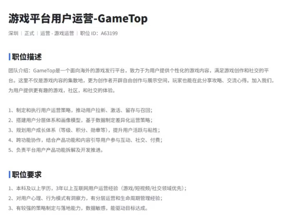 据环球网最新报道,字节跳动正筹备在海外市场推出对标Steam的游戏发行平台GameTop。从其招聘岗位描述中可见,该平台将整合游戏内容分发、创作工具支持与玩家社交功能,定位为海外用户的个性化游戏生态入口。这一动作标志着字节跳动在游戏领域的战略升级——从传统开发发行模式转向自建平台,试图在移动端复制Steam的商业奇迹。