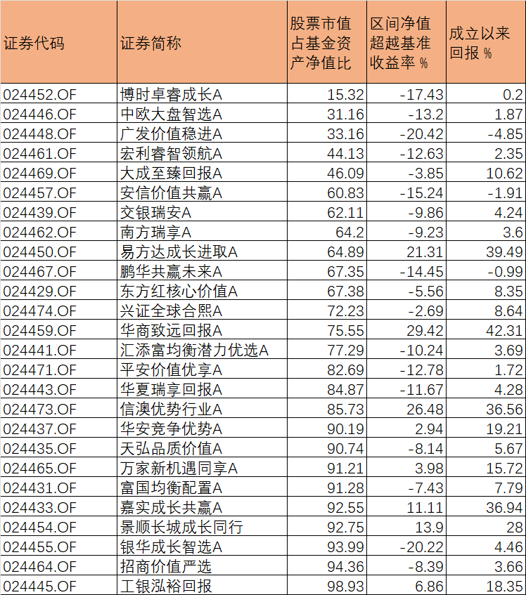 从资产配置的角度分析,部分基金在牛市环境中表现逊于基准,主要源于其过度保守的持仓结构。