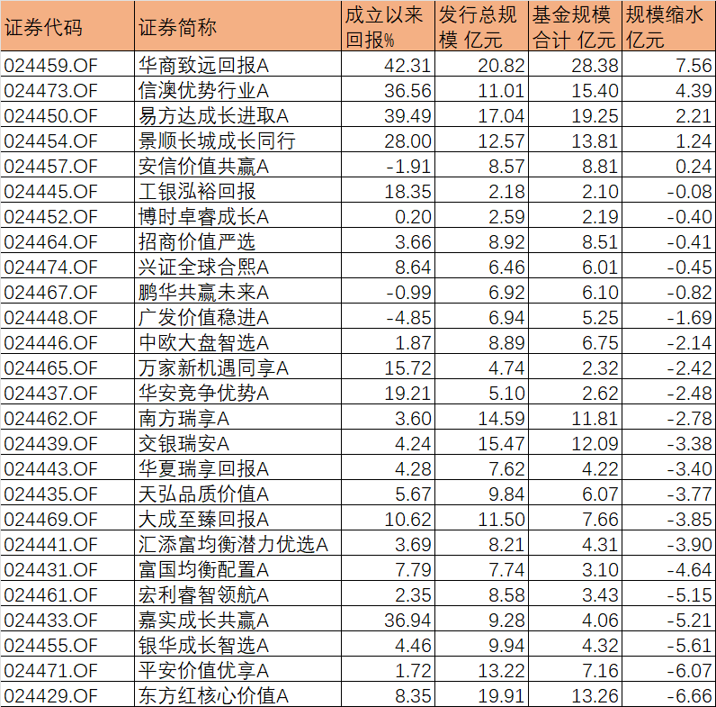 部分基金被大幅度赎回