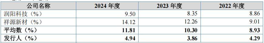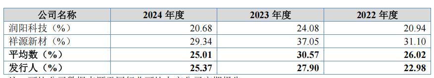 报告期内,新恒泰综合毛利率分别为22.98%、27.90%和25.37%,2024年,毛利率水平与同行业可比公司平均水平较为接近,2022年和2023年毛利率水平与同行业可比公司相比略有差异,但变动趋势一致,主要系公司与可比公司间产品结构、应用领域方面均存在差异。