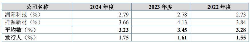 报告期内,新恒泰销售费用率分别为1.55%、1.61%和1.75%,低于同行业可比上市公司平均水平3.28%、3.45%和3.23%,这一点有可取之处,公司运营较为稳健。