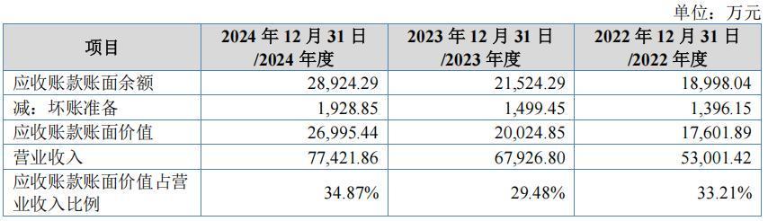 报告期各期末,新恒泰应收账款的账面价值分别为1.76亿元、2.002亿元和2.7亿元,占各期末总资产的比例分别为24.12%、22.35%和26.15%,占各期营业收入比例分别为33.21%、29.48%和34.87%。报告期各期,公司应收账款周转率分别为3.38次/年、3.61次/年和3.29次/年。
