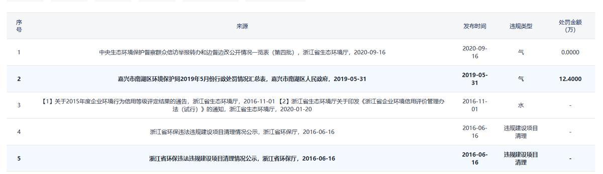 早在2019年,新恒泰有过一次不正常运行大气污染防治设施被环保局处罚12.4万元。