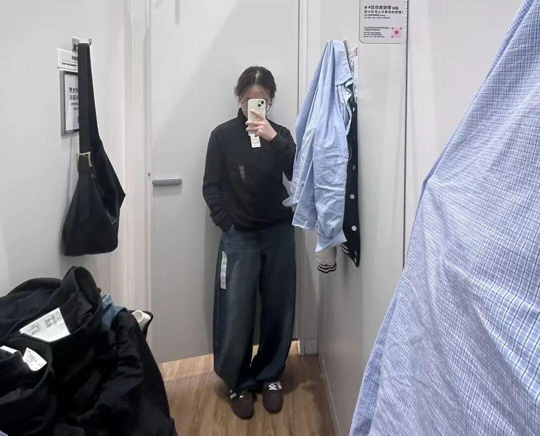 99年女生卷卷的试穿经历堪称“灾难现场”。在优衣库门店,她被橱窗模特的慵懒气质吸引,试穿军绿色弯刀裤后却秒变“潘长江同款O型腿”。“裤腿在膝盖处夸张膨胀,脚踝处又突然收紧,整个人像两根行走的香蕉。”她的吐槽引发数千网友共鸣,小红书上“弯刀裤买家秀劝退指南”话题下,整齐划一的“O形腿”照片形成独特景观。