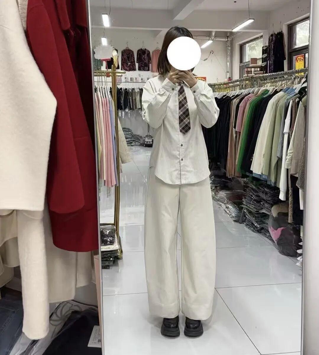 这款裤子的设计堪称几何学的极致应用:腰部收紧、裤腿从膝盖处向外膨胀形成最大弧度,再向脚踝收窄,整体轮廓如同一把蓄势待发的弯刀。设计师对细节的苛刻要求令人咋舌——弧度偏差超过5度、面料挺括度超标、裤长短于脚踝骨,都会让穿着者瞬间“现形”。苹果型身材、胯宽超过肩宽、身高低于155cm或超过175cm的消费者,几乎都被列入“慎穿名单”。
