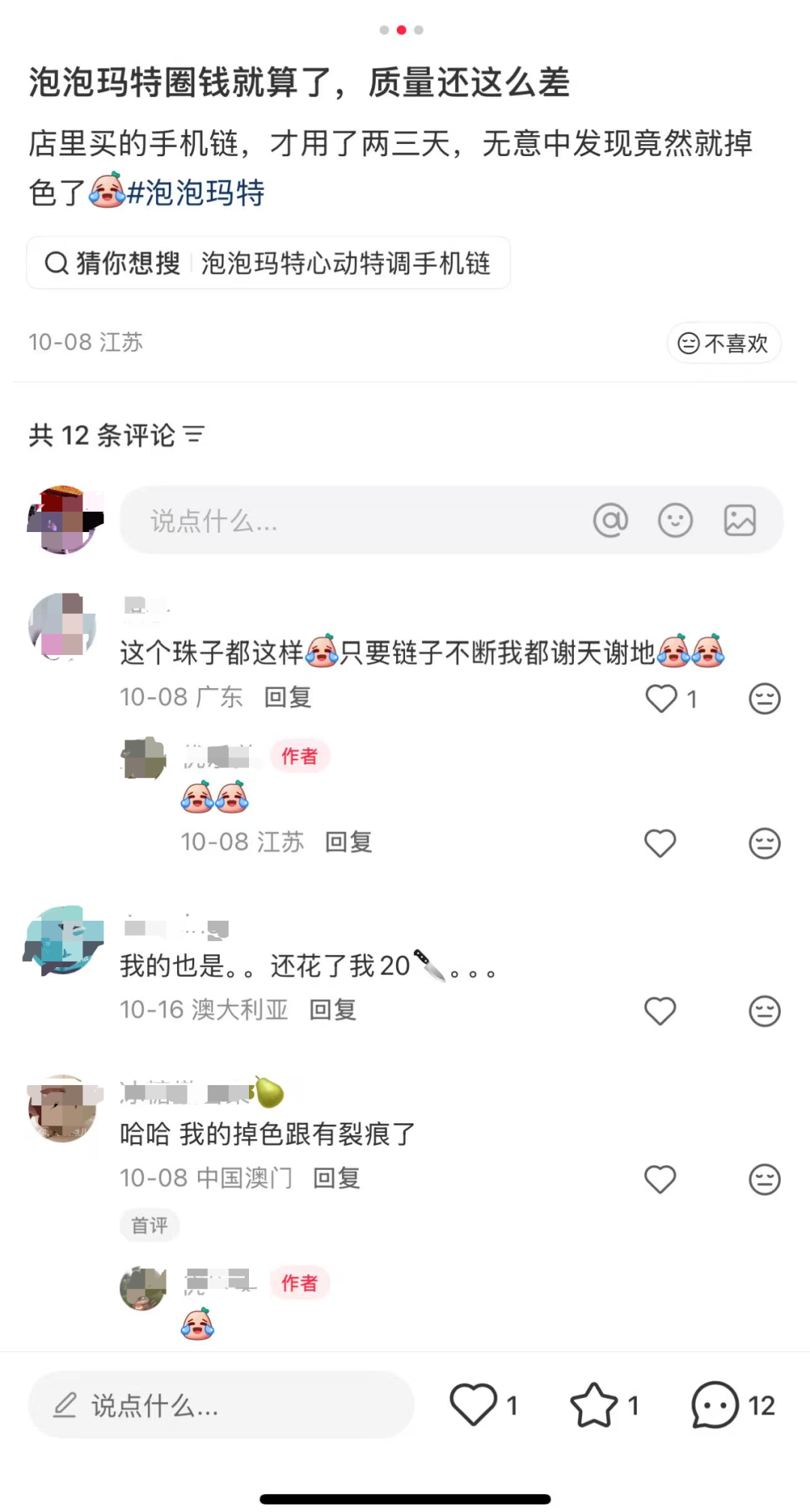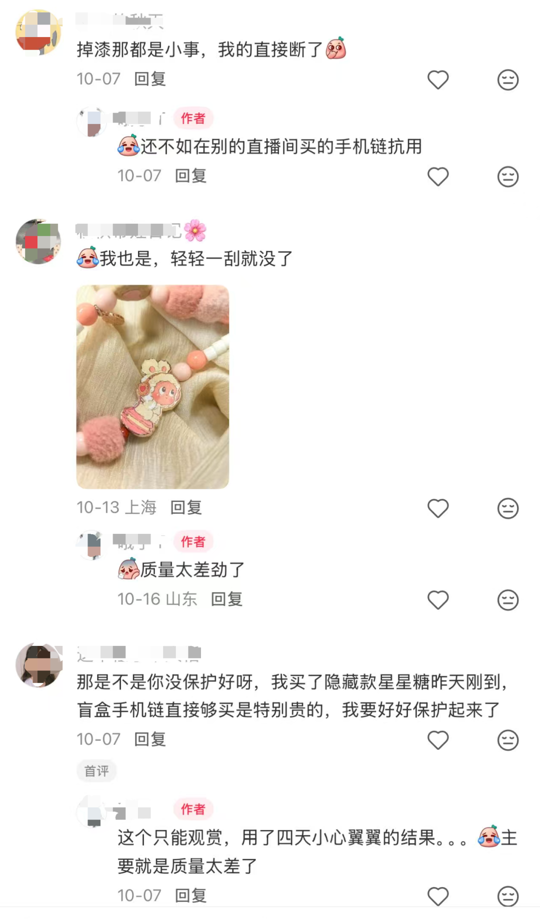 猫姐搜索了一下,类似挂链在某宝上的价格,几块钱到十几块不等。而泡泡玛特的这款盲盒,价格却高达79元,不少网友吐槽,正品还存在掉漆、裂缝等质量问题。
