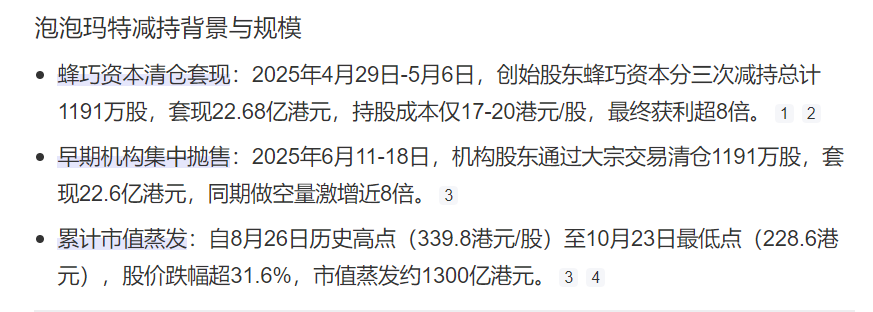 说到这里,必须得佩服泡泡玛特早前套现跑路的那些投资人们。因为在这些人套现乃至清仓不久后,泡泡玛特的股价就开始高位跳水了。
