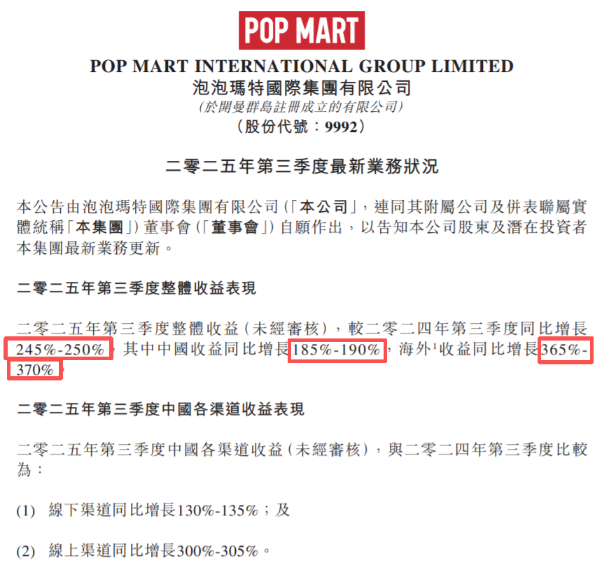 说起来也是挺神的。泡泡玛特的业绩是节节攀升的,连最新公布的三季报,也是涨幅惊人。