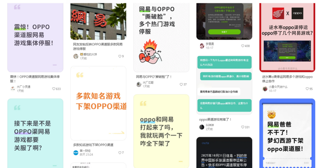 近日,小红书等社交平台涌现大量用户反馈,称OPPO渠道服多款网易游戏出现停服现象。一位《逆水寒》玩家表示:“当时看到游戏停服公告急得不行,幸好及时找回了账号资产,要是玩其他网易游戏可能真要崩溃了。”这场风波迅速发酵,引发媒体跟进报道。