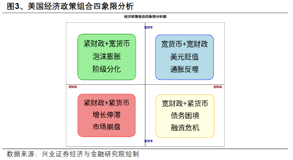上述问题从根本上制约了美国货币与财政政策的操作空间。在通胀压力持续存在的背景下,若实施宽松货币政策,将更容易引发通胀升温,进而增加低收入群体的生活负担。而在美元信用下降的情况下,即使财政政策受选票政治影响倾向于扩张,美国也不得不面对一个现实问题:大规模美债供给由谁承接?因此,美国各类政策组合的操作空间均受到明显制约——如果美国采取“货币财政双宽松”的政策,则面临通胀和美元贬值的压力;“宽财政+紧货币”则会导致美债发行难度上升;“宽货币+紧财政”尽管利好股市,却会导致贫富差距扩大和阶级矛盾激化——低收入人群难从股市上涨中受益。