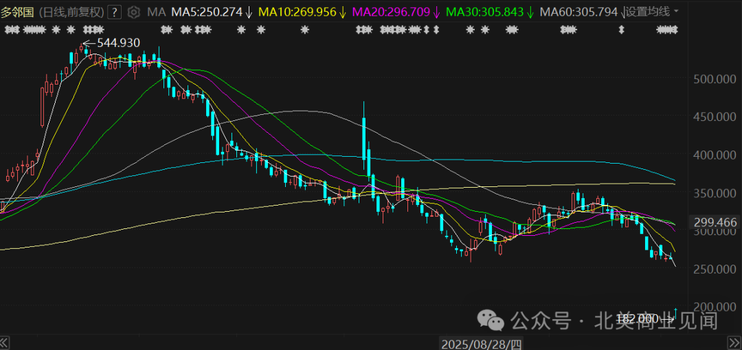 自今年5月创下历史新高544.93美元/股以来,多邻国股价已持续下跌,创出了1年零3个月的新低,期间累计跌幅高达64%,年内跌幅也达到了40%。