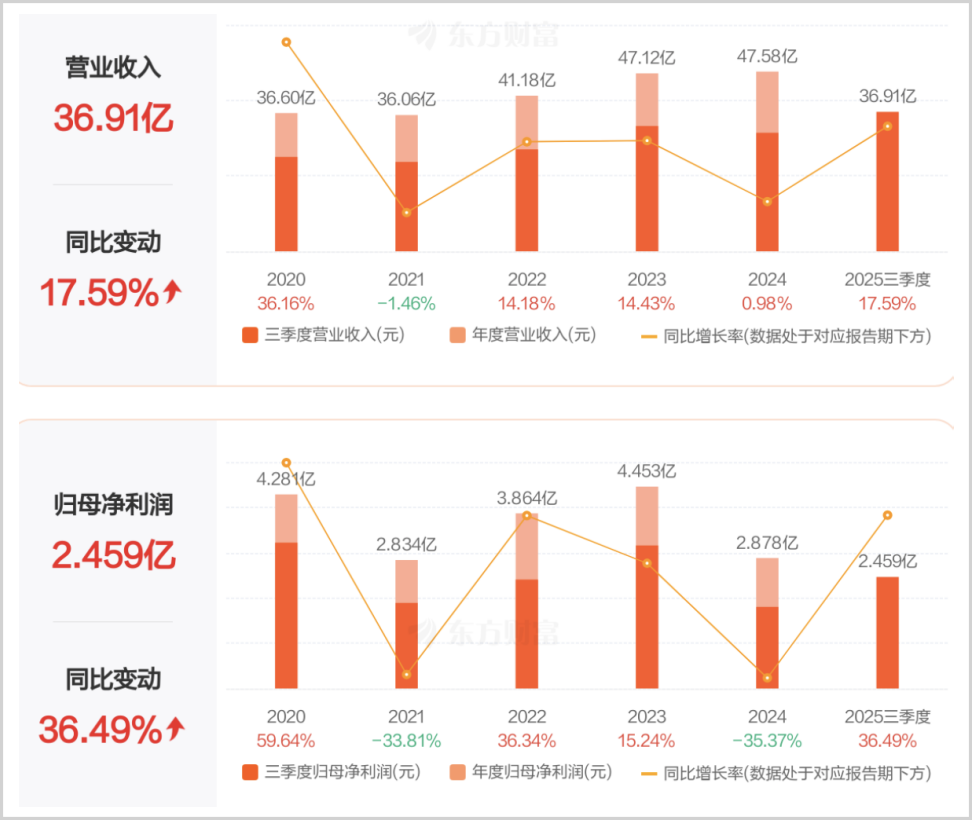 在行业K型分化的背景下,小熊电器前三季度实现营收36.91亿元,同比增长17.59%;归母净利润2.46亿元,同比增长36.49%。同期,家电零售额同比增速仅5.2%,小熊电器的增速远超行业大盘。扣非后净利润达2.27亿,同比劲增79.31%,经营活动现金流量净额提升180.20%,盈利质量与营运效率显著提升。