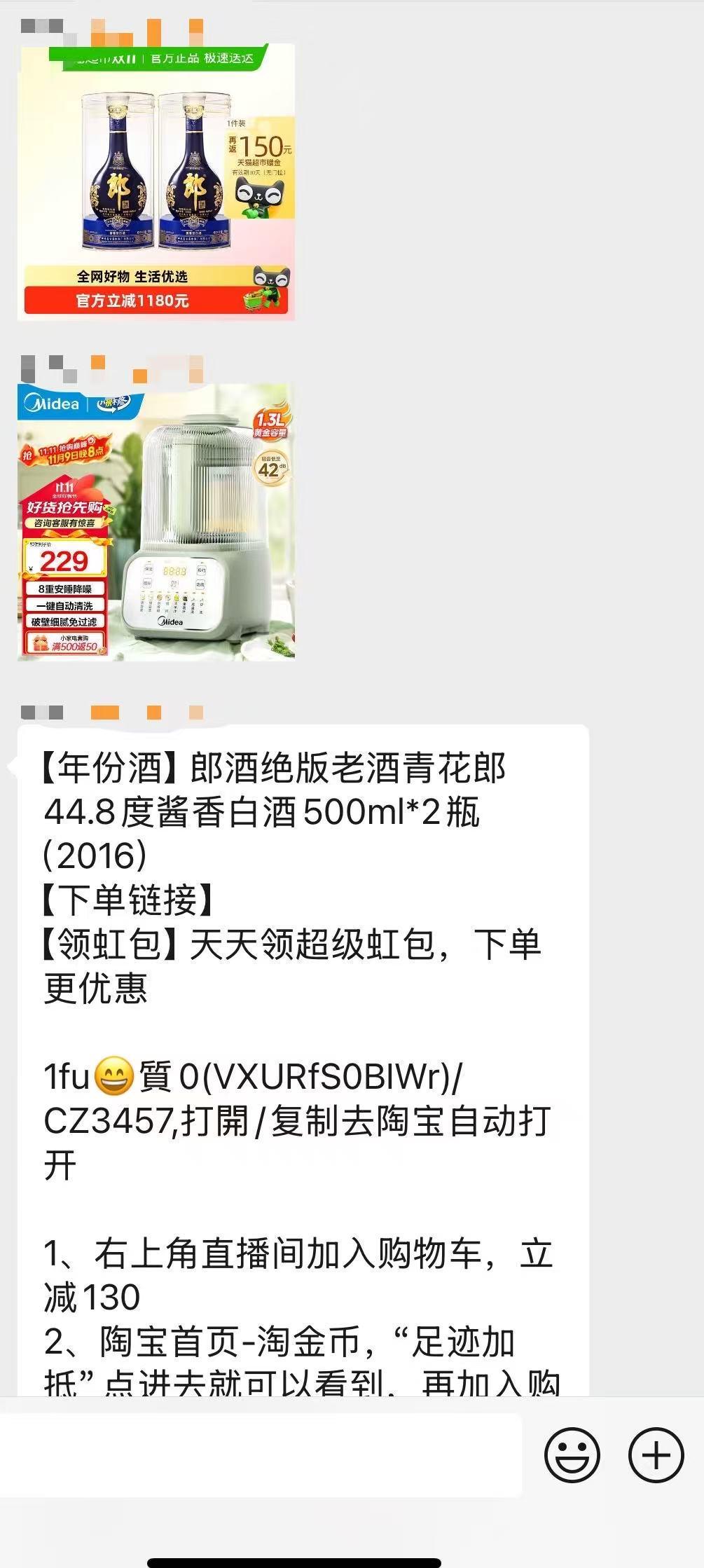 “白酒天然利润高,佣金也高,很多同行做酒群、母婴群等垂类社群,在群里夹带其他商品的广告链接,吸引用户下单获取更多佣金。”刘洋向时代周报记者解释道。