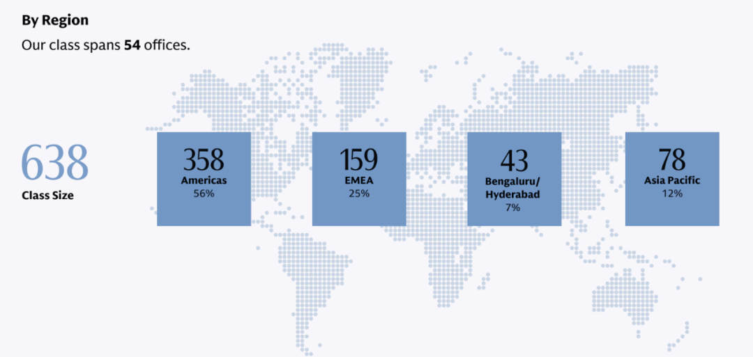 从地域分布来看,美洲地区以358人(占比56%)继续保持最大贡献区域,与2023年持平;EMEA(欧洲、中东和非洲)地区有159人(占比25%),较2023年的29%有所下降;亚太地区以78人(占比12%)位列第三,较2023年的10%提升2个百分点;其他地区贡献43人(占比7%)。值得注意的是,约31%的新任MD是从实习生或毕业生项目逐步晋升而来,这些员工的平均任职年限达到12年。