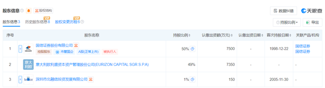 1998年12月,作为中国最早一批成立的鹏华基金,是老十家公募之一,第一大股东为国信证券,持股比例50%,意大利欧利盛资本资产管理股份公司,持股49%,深圳市北融信投资发展有限公司持股1%。