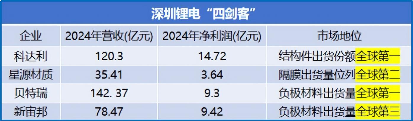 当大众目光聚焦于宁德时代、比亚迪等电池与整车巨头时,产业链上游的“隐形冠军”正悄然崛起,成为细分领域的领跑者。以深圳锂电“四剑客”——科达利、新宙邦、星源材质、贝特瑞为例,它们突破日韩技术封锁,实现了从“跟跑”到“领跑”的跨越式发展。