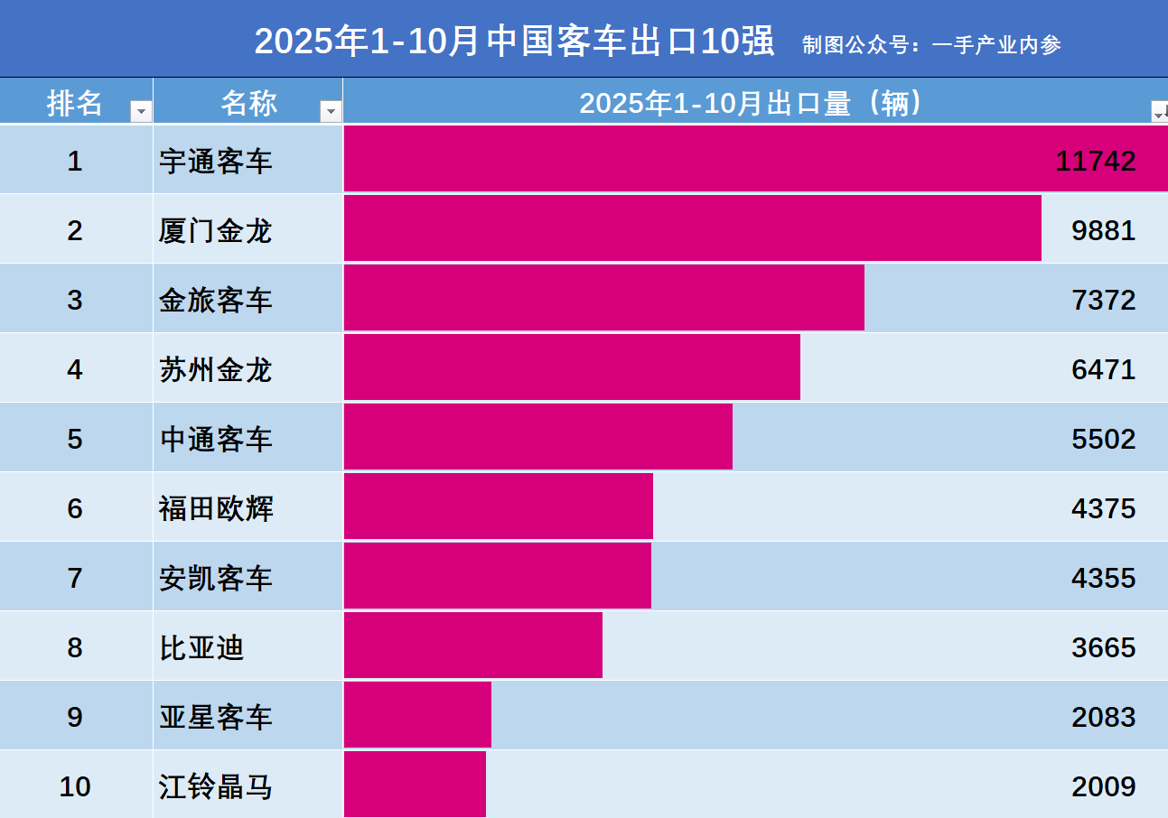 附:2025年1-10月中国客车出口量10强厂商名单(数据来源:中国客车信息网)