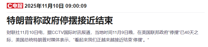 盘前,特朗普政府称停摆接近尾声,最新消息显示,美国国会参议院就结束联邦政府停摆达成一致。部分温和派民主党人同意在没有延长医疗保健补贴的情况下支持共和党的支出立法,迈出了结束政府停摆的第一步。受此影响,美股三大指数期货均在盘前小幅走高,纳指期货夜盘涨超1%。