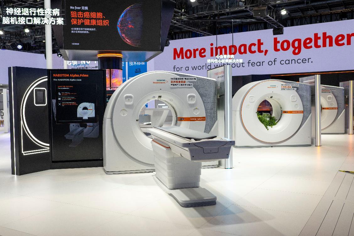 在医疗器械及医药保健展区,西门子医疗展出的亚洲首发CT机成为焦点。该企业带来的超高梯度场磁共振设备,已助力Neuralink公司完成脑机接口植入临床试验,将侵入式手术从“盲插”时代推进至“可视化、可规划、可控制”的新阶段。更令人瞩目的是,光子计数CT“家族”三款产品同步亚洲首发,其中两款计划于2026年实现中国本土化生产,有望为帕金森病患者改善震颤症状,甚至帮助瘫痪患者重获站立能力。