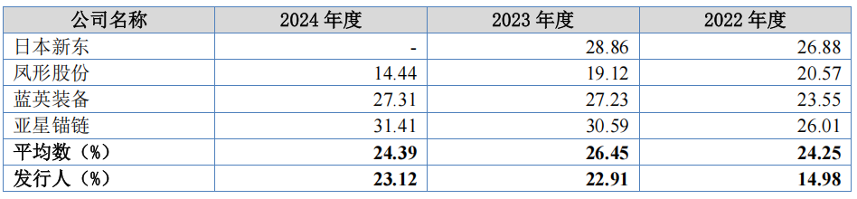 报告期内,大亚股份综合毛利率分别为14.98%、22.91%和23.12%,呈逐年增长的趋势,主要系受到原材料废钢价格下降、公司推行精益管理实现降本增效、产品市场认可度提升、高附加值产品占比增加等导致公司产品价格提高等因素的影响,具有合理性。2022年,公司的综合毛利率曾低于可比同行均值10个点之多。