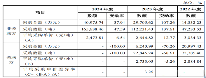 废钢供应商厂家众多,市场供应充足,从价格上看,报告期废钢均价为2,943.67元/吨、2,661.40元/吨和2,473.81元/吨;价格波动-9.59%和-7.05%,连续走低的状态。大亚股份在回复审核问询函时指出,报告期内公司关联采购中以废钢为主的原材料占比持续超过75%,而这些供应商多由公司前员工或其亲属实际控制。既然废钢市场供应充足,大亚股份反手给自己足够的关联采购,两者有所冲突,或令人难以信服。
