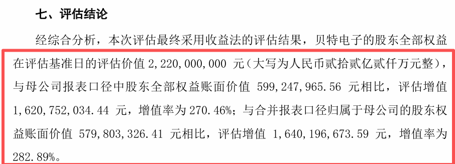 IPO终止后,贝特电子转向“卖身”扬州女首富梁勤控制的扬杰科技。3月13日,扬杰科技发布停牌公告,拟通过发行股份及支付现金收购贝特电子100%股权。7月初,交易方案调整为纯现金收购,9月11日晚披露以22.18亿元收购全部股权,溢价率高达270.46%。