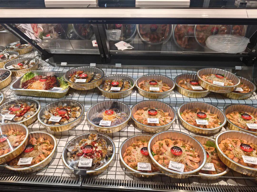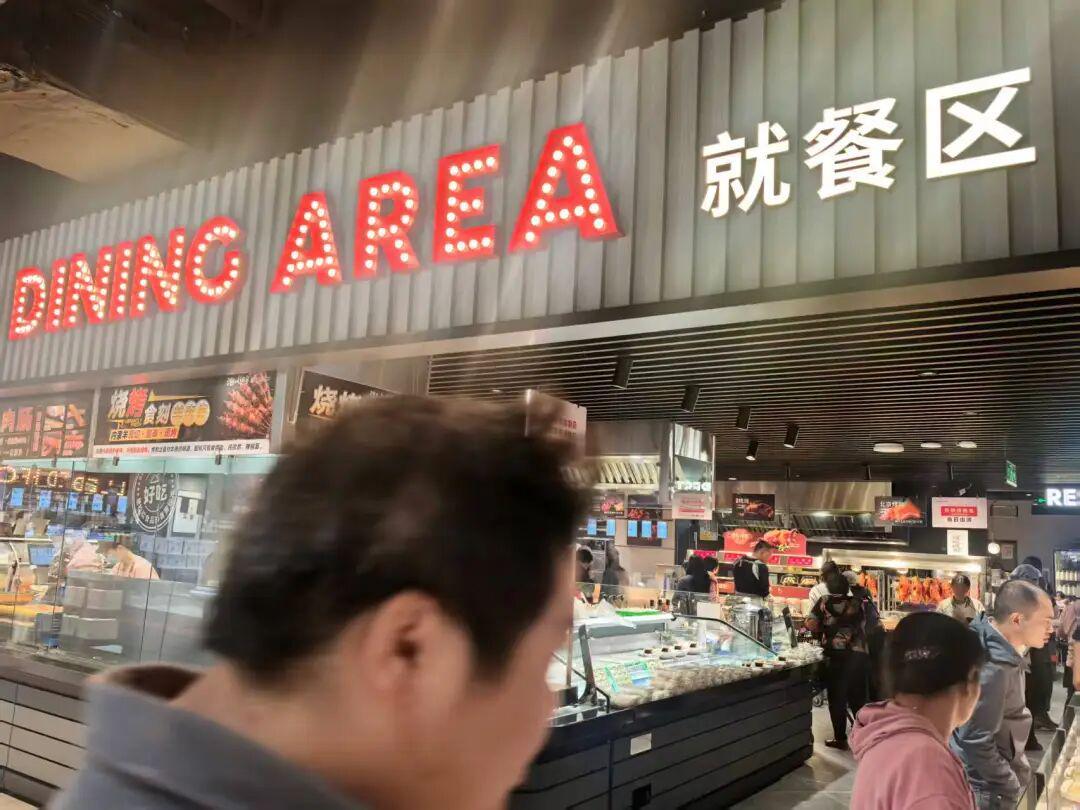 水产区和餐饮区紧邻,设置了专门的就餐区,虽然当时已经是下午三点左右,但水产区人潮涌动,整个就餐区依然有依稀的身影在就餐,这是门店提供的一项海鲜水产加工服务。