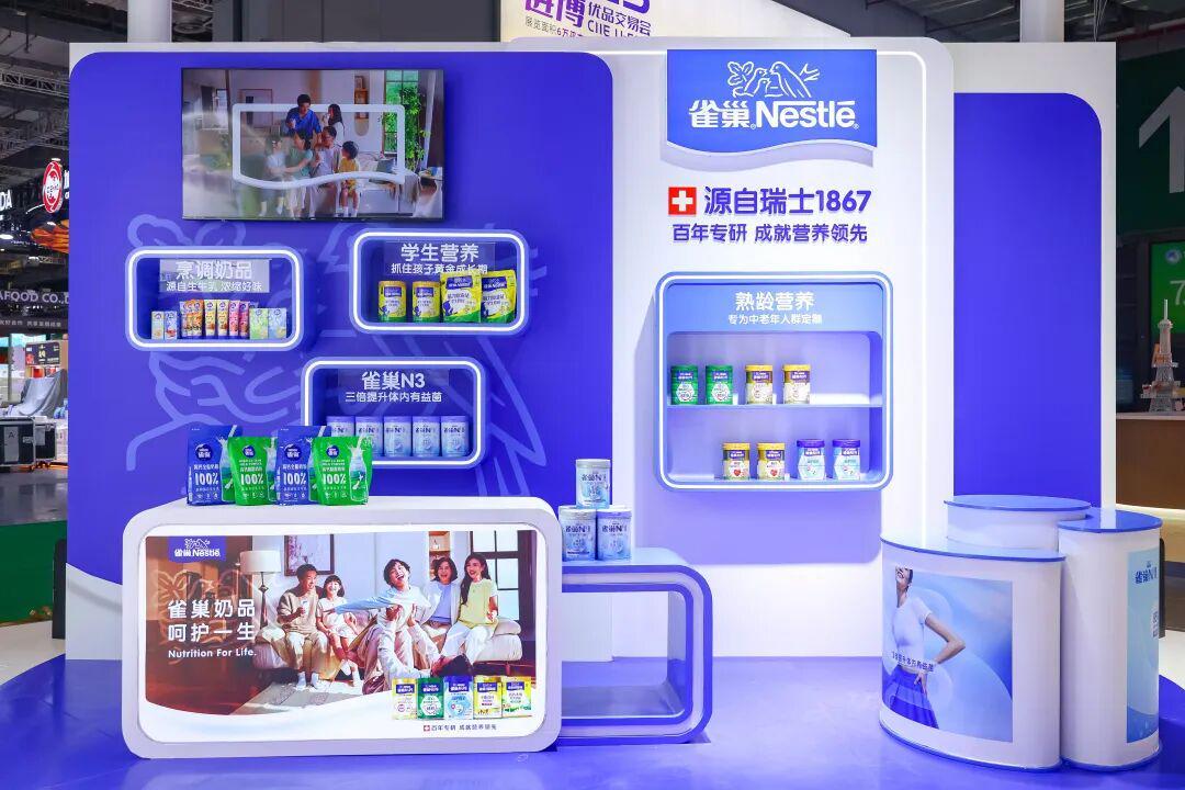 雀巢携旗下多个业务单元参展,带来来自全球12个国家的百余款产品,集中展示在营养健康、产品创新和可持续发展领域的最新成果。展区涵盖婴儿营养、奶品、健康科学、宠物护理、进口水及咖啡等多个板块。婴儿营养展区推出针对不同年龄段的配方奶粉与辅食产品;奶品展区展示了面向青少年及中老年群体的配方奶粉;健康科学板块带来儿科过敏、医学营养及成人康复产品,覆盖多种疾病管理场景。宠物护理展区则展示了可缓解猫毛过敏的宠物食品与肠道健康调理产品。