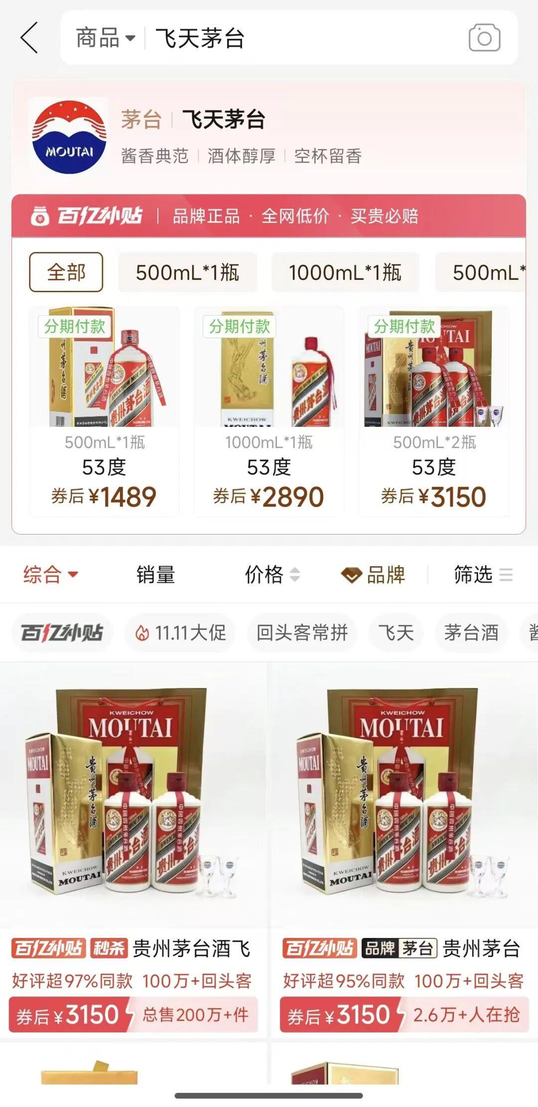 一方面,作为茅台股价核心指标的53度飞天茅台市场价格不断下探。临近双十一,作为电商刷GMV利器的高端白酒,在部分平台补贴下,价格进一步下探。曾持续溢价销售的53度飞天茅台在部分电商平台的零售价降至1499元/瓶以下,结束了其长期的溢价时代。