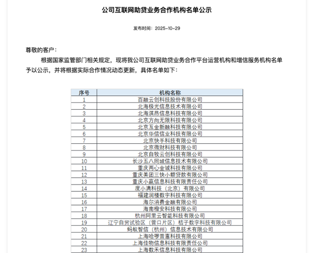 合作渠道方面,公司通过嵌入合作机构平台营销消费贷款产品,并引入第三方担保公司增信。截至2024年末,担保贷款余额为122.5亿元,占贷款余额的比重为31.17%。10月29日,公司公布了助贷业务合作机构名单,包括百融云创、快手、度小满等55家公司,其中23家为融担公司。