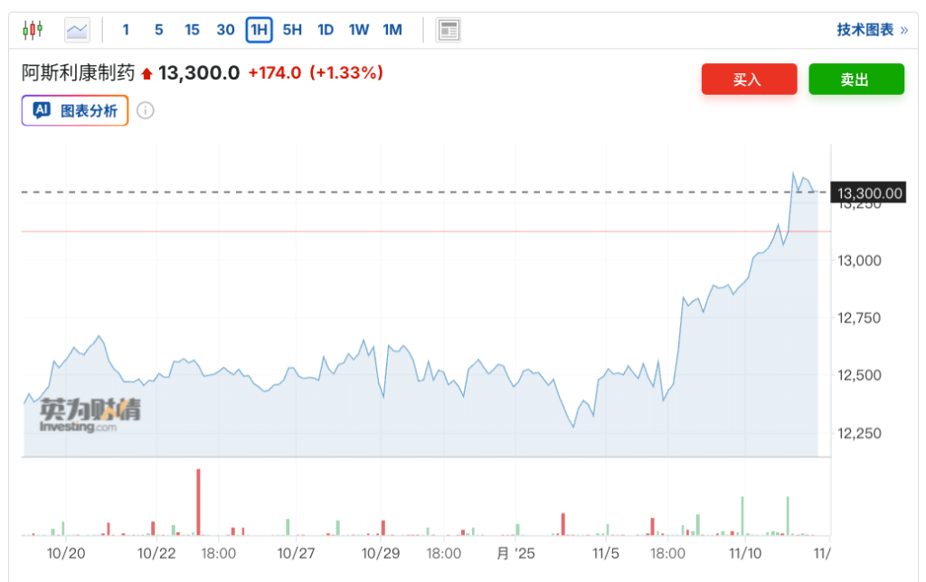 本轮上涨主要受阿斯利康上周发布的超预期业绩支撑。财报显示,受创新药需求持续拉动,公司前三季度总营收同比增长11%,核心每股收益增长15%,各业务板块及主要区域市场均实现稳健增长。