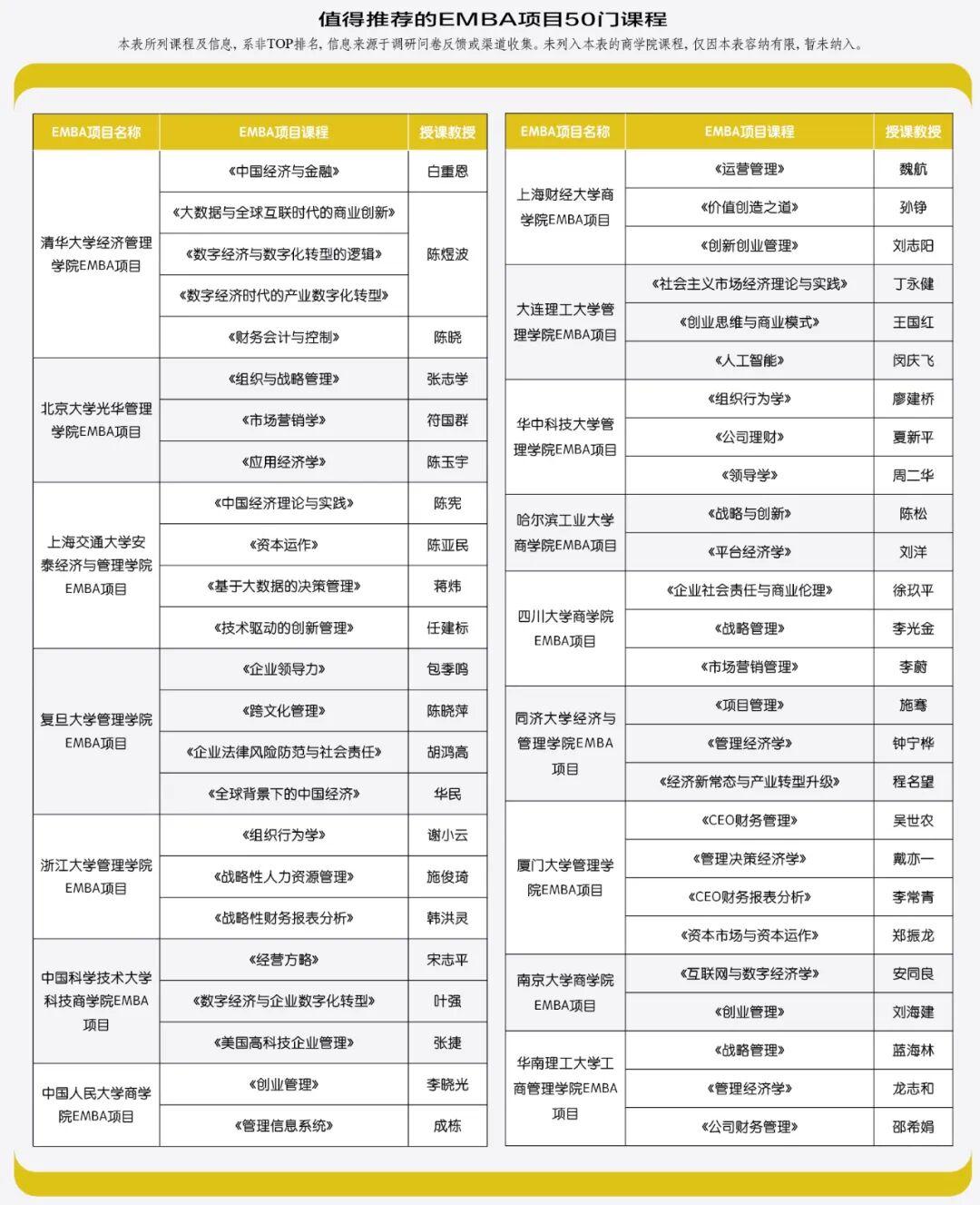 限于篇幅,这里仅列举部分EMBA项目,进行概括描述——