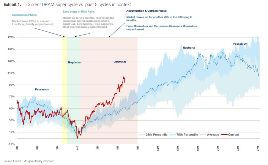 据追风交易台,摩根士丹利在最新的报告中指出,DRAM价格正突破历史高位,开启一轮前所未见的"超级周期"。