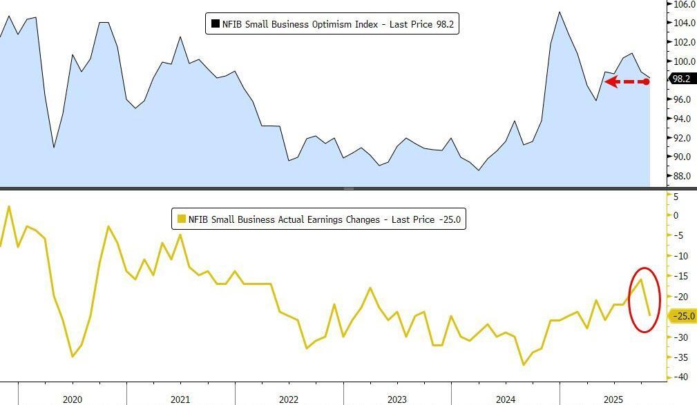 此外,因盈利状况恶化和经济乐观情绪减退,美国小企业信心指数在10月降至六个月低点。全美独立企业联合会周二公布的数据显示,乐观指数下降0.6点至98.2,该指标的10个分项中有5项下降、4项改善。