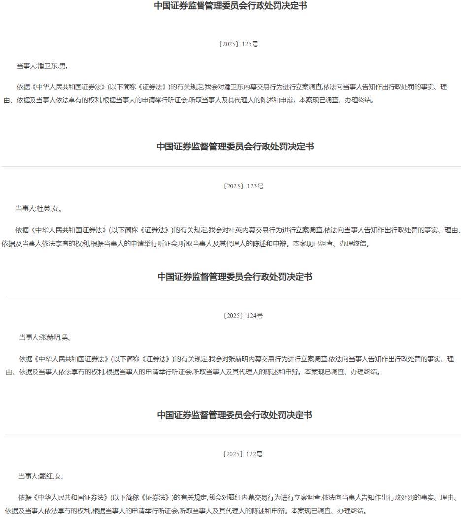 这份公告的发布,源自于2025年10月31日中国证监会网站公布的一则行政处罚决定书。决定书指出,潘卫东违反《证券法》第五十条、第五十三条第一款的规定,构成《证券法》第一百九十一条第一款所述的内幕交易行为。