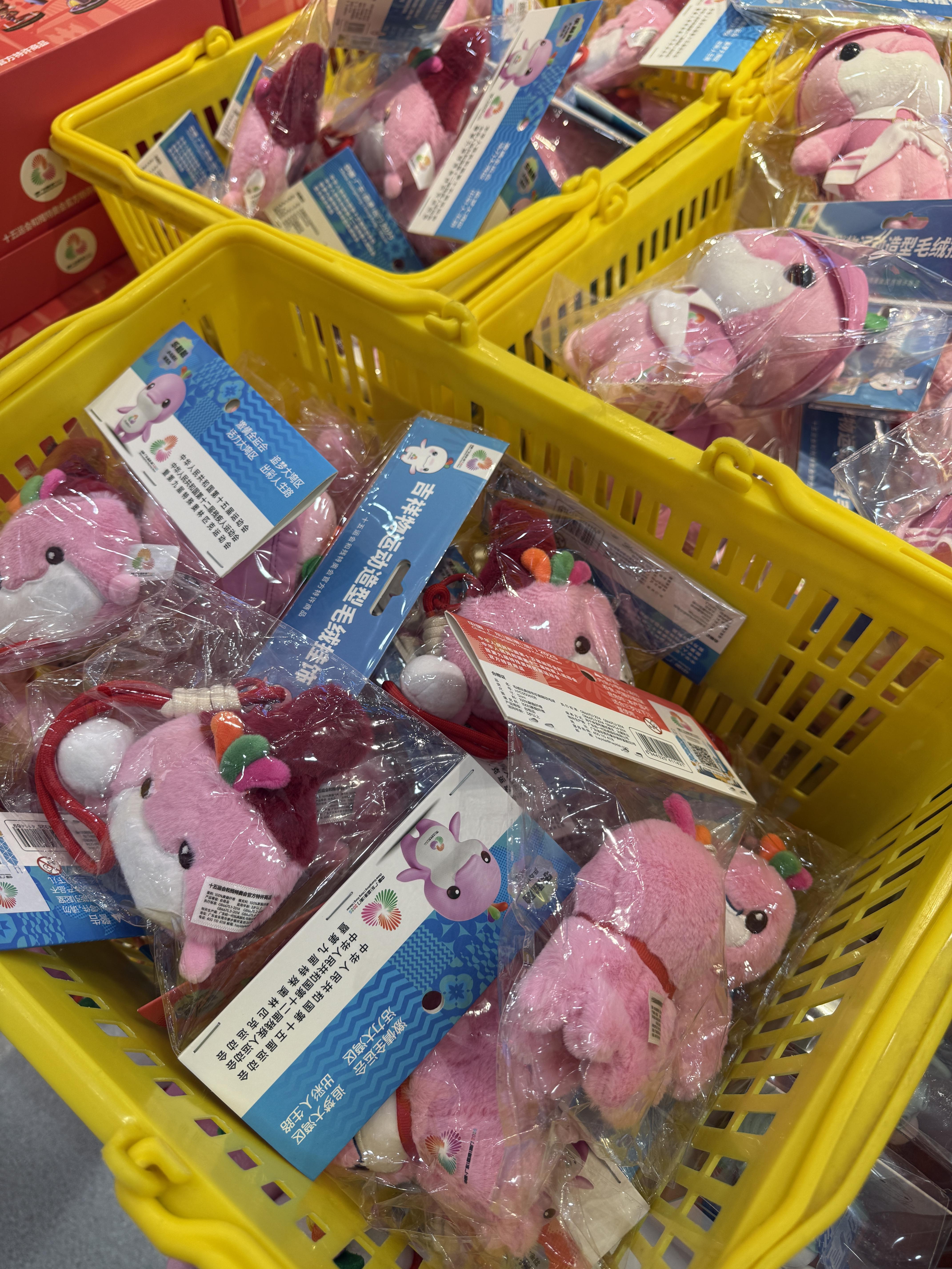 “盲盒已经售罄了,要明早才补货。大家注意秩序,自行选购!”11月10日傍晚6点,广州市天河区一家全运会官方特许零售店人头攒动,店员扯着嗓子喊。货架上第十五届全运会吉祥物“喜洋洋”“乐融融”的周边正被消费者们抢购,店员们每隔几分钟便要进行一轮补货。