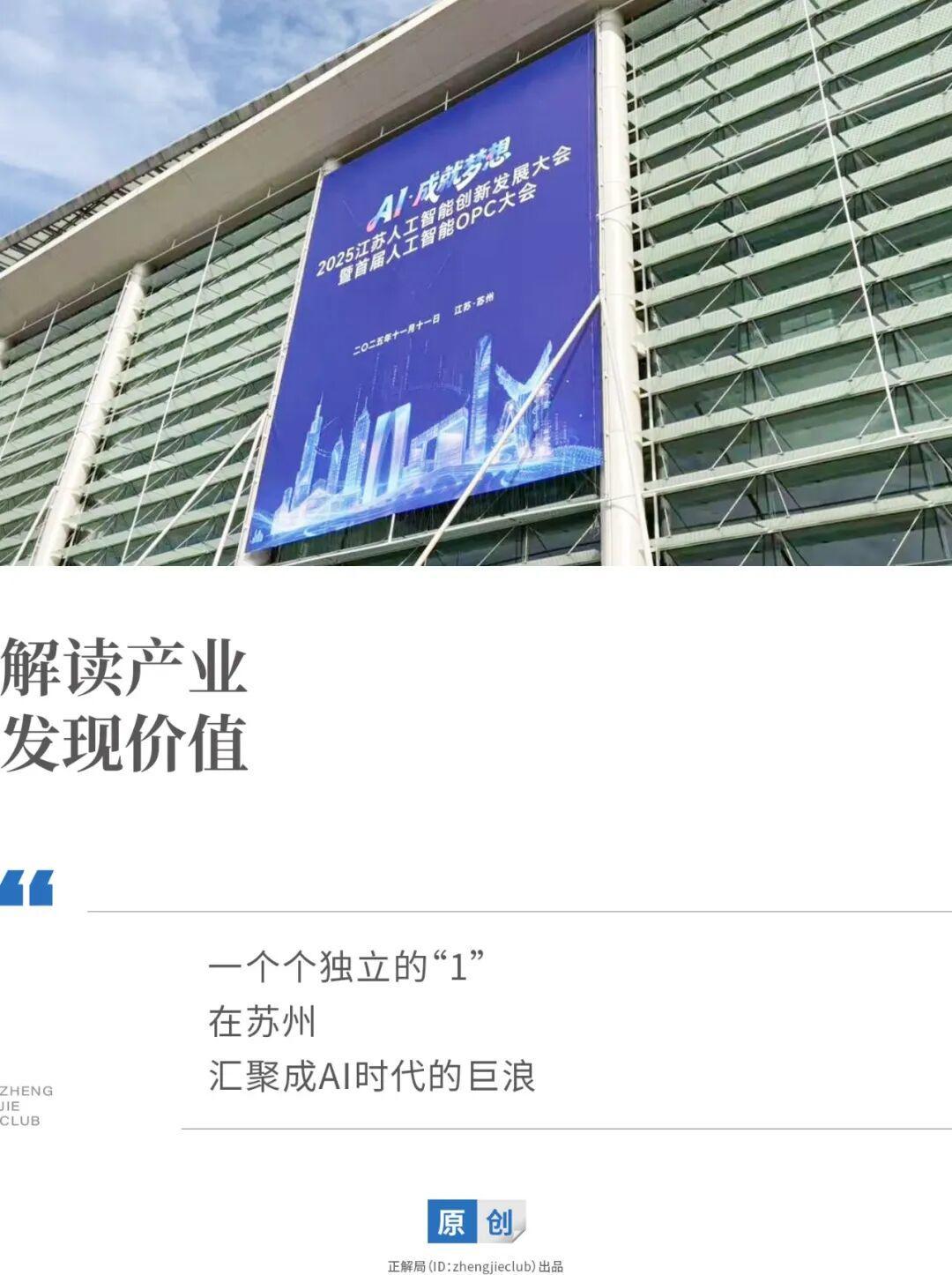 当其他城市还在追逐成熟企业和大规模投资时,苏州已经把目光投向了个体创造力的解放,投向了AI时代最具活力的创新单元——“一个人+AI=一家公司”的全新模式。