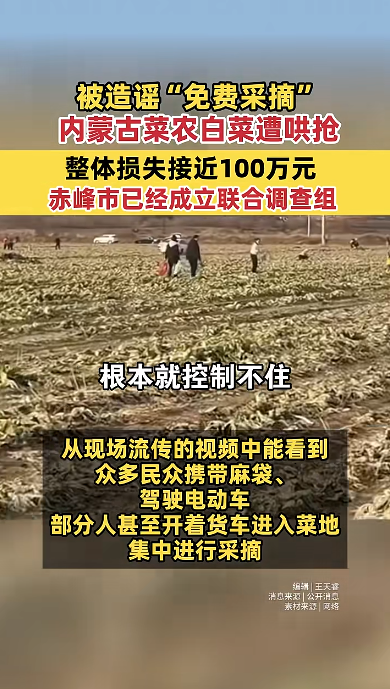据了解,本次事件的源头是一个名为“自信姐”的抖音账号发布的一则短视频:镜头掠过一片白菜地,画外音称“冰雹打坏不要了,免费砍,想拿多少拿多少”,定位显示在赤峰某地。