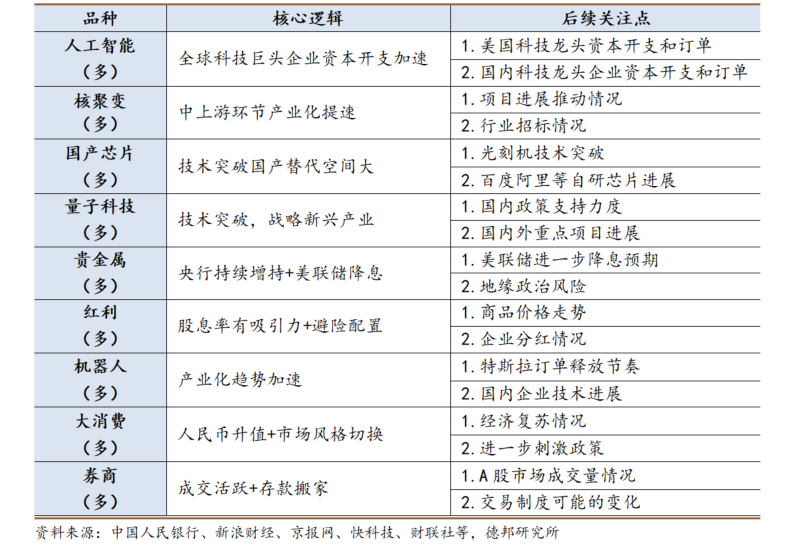 权益方面,我们认为CPI回暖叠加美国政府停摆结束,内外因素推动下市场或开启震荡上行,但市场对“政策确定性”与“成长高弹性”的偏好或分化,建议均衡配置红利、微盘、产业趋势板块,科技领域长期看好。