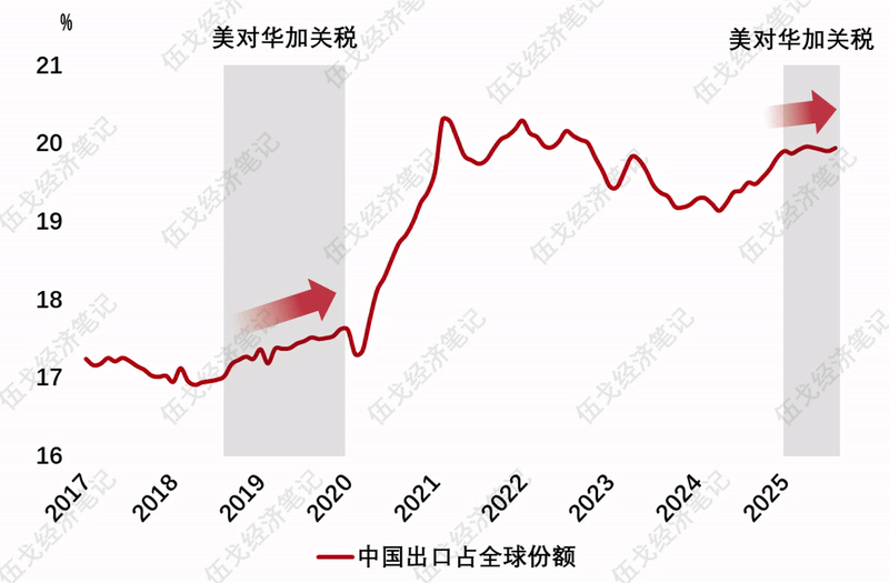 随着特朗普的支持率下降尤其是共和党在多地选举中失利,其未来工作重心或回归国内。通胀及“负担能力”问题(Affordability)已是美国民众的首要关切。相应地,美关税对全球经济的拖累势必显著减弱。值得一提的是,贸易摩擦期间我国出口占全球份额依然彰显强势。